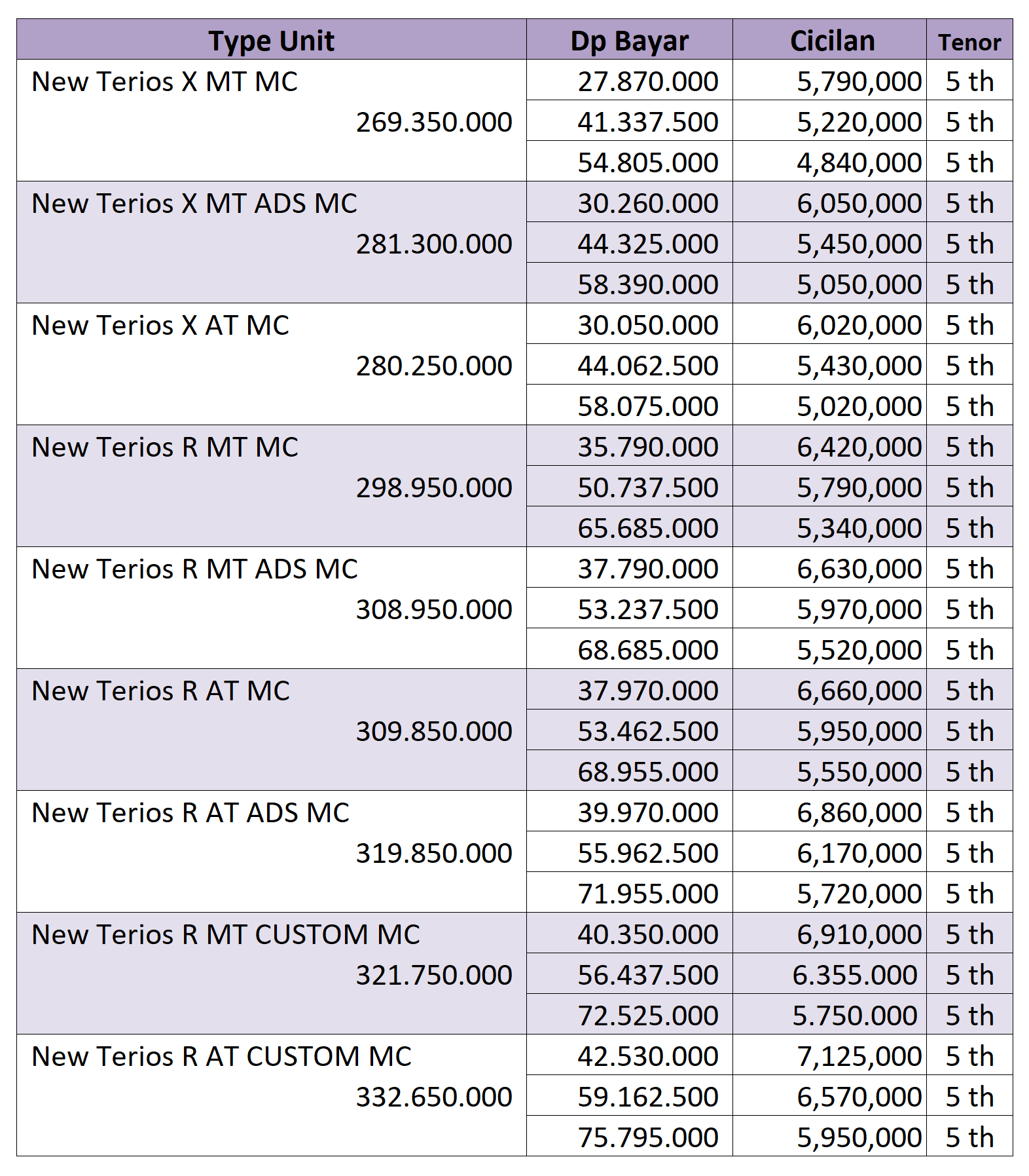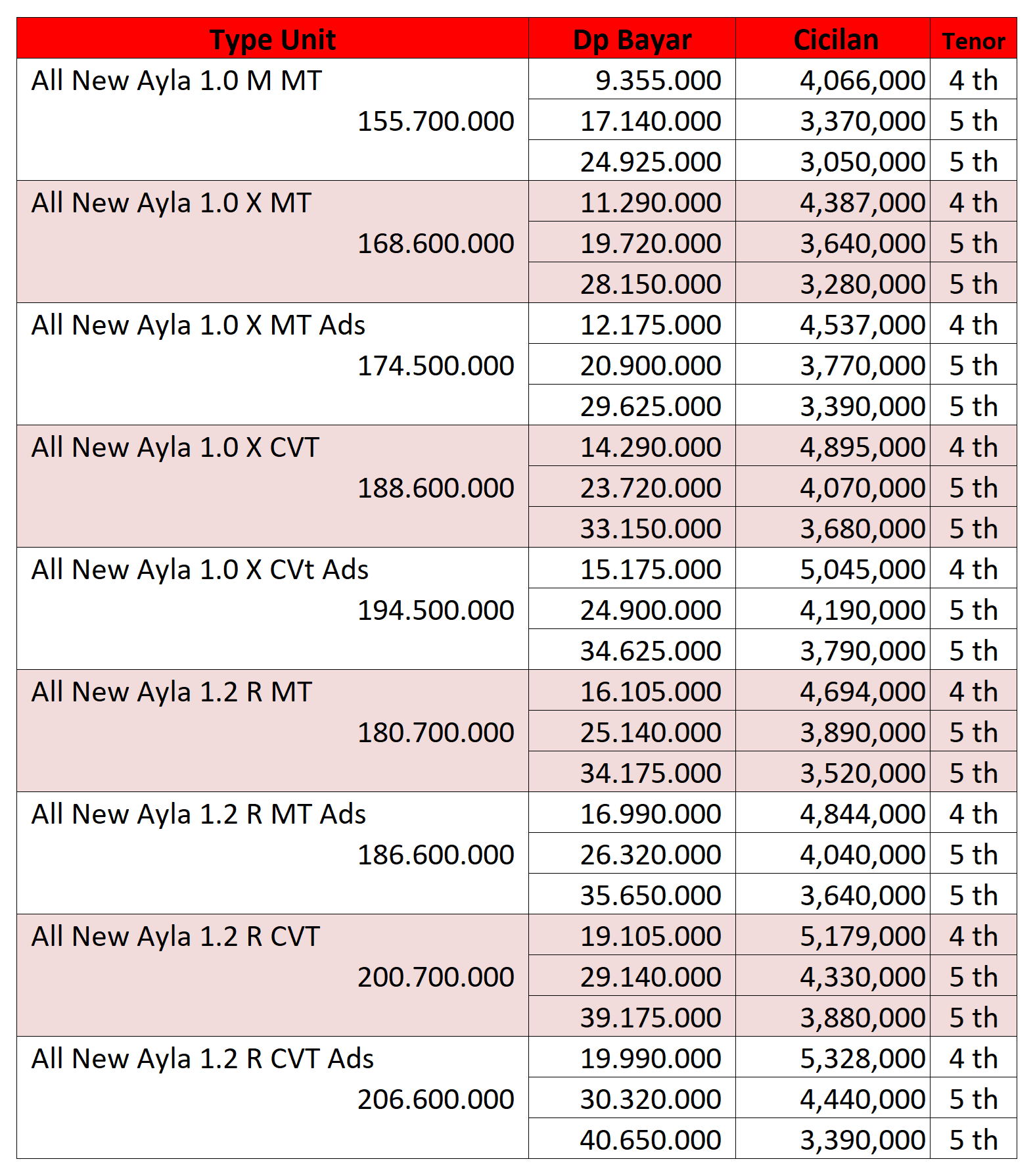 Dapatkan informasi promo Daihatsu, paket kredit & tabel harga terbaru,dapatkan penawaran terbaik dari kami