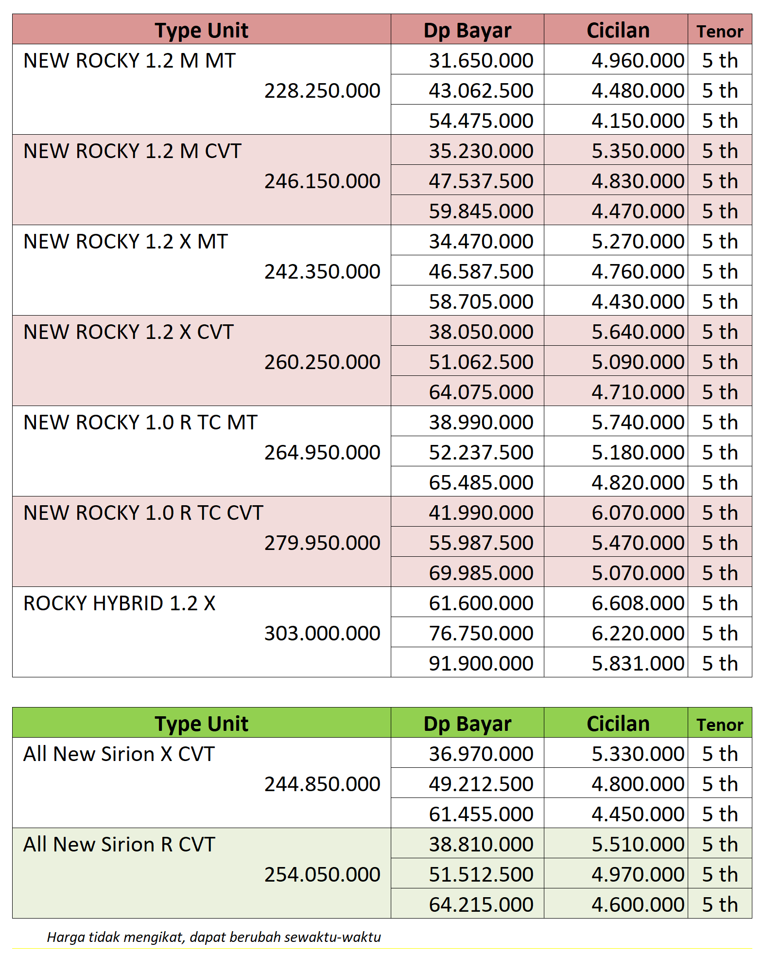 Dapatkan informasi promo Daihatsu, Paket kredit & Tabel harga terbaru, dapatkan penawaran terbaik dari kami